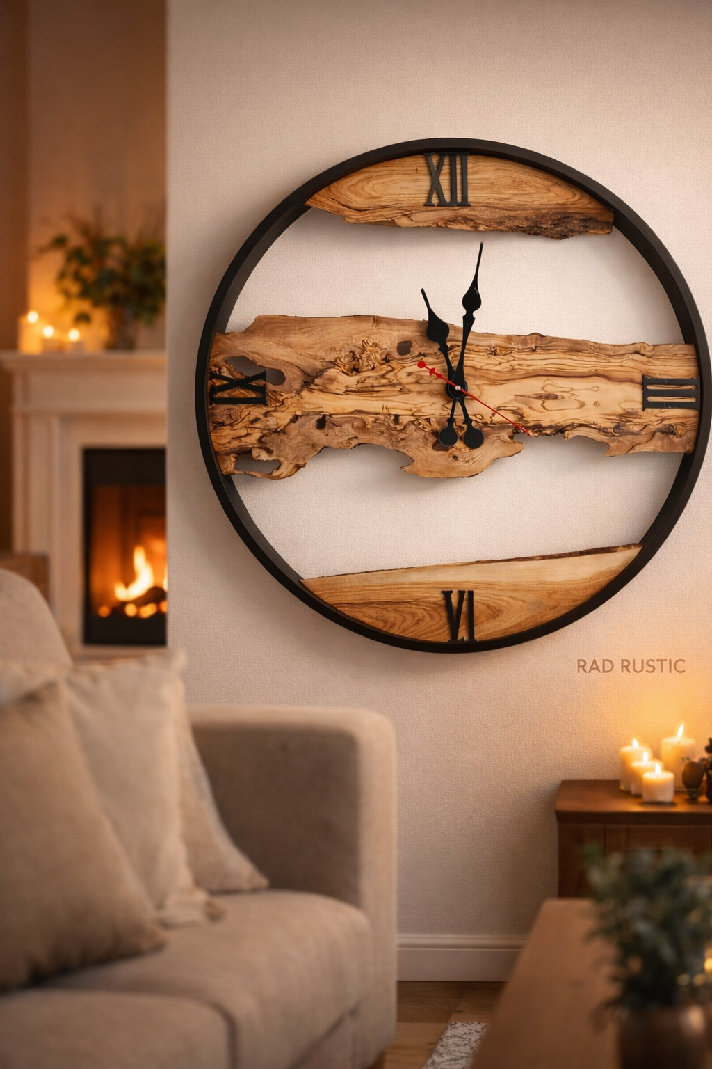 ساعت دیواری رستیک قطر ۸۰ چوب زیتون